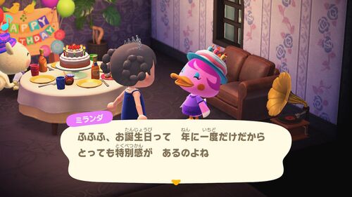 先日、ミランダ姉さんの誕生日でした。 完全に忘れてて(ごめん)朝起きたら誕生日だよ!って言われたのはいい思い出です。 ちなみに私が行ったとき一緒にお祝いしていたのはジュンでした。キャンプサイト勧誘からずっと島にいてくれてます。 ブルベとブルベの…